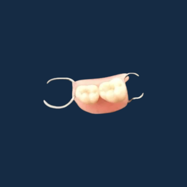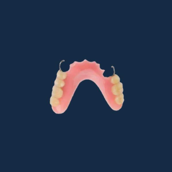 Components: Acrylic base, artificial teeth, and metal clasps (if needed)